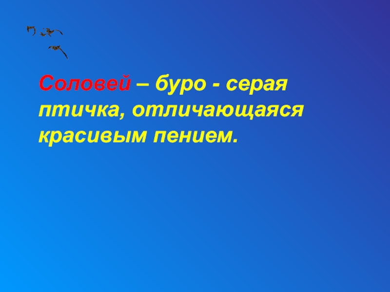 Слайд 18 Соловей – буро - серая птичка, отличающаяся красивым пением.