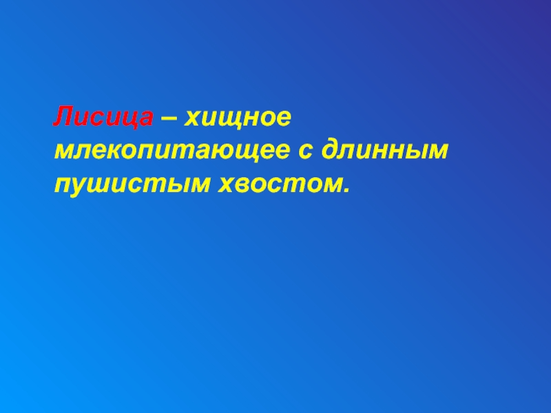 Слайд 41 Лисица – хищное млекопитающее с длинным пушистым хвостом.