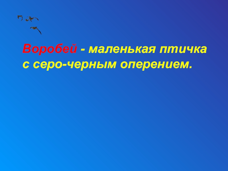 Слайд 5 Воробей - маленькая птичка с серо-черным оперением.
