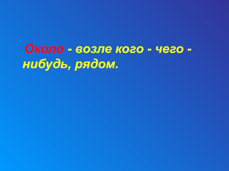 Слайд 641 Около - возле кого - чего - нибудь, рядом.