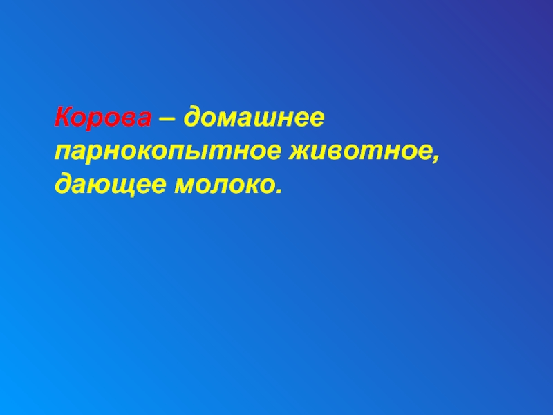 Слайд 36 Корова – домашнее парнокопытное животное, дающее молоко.