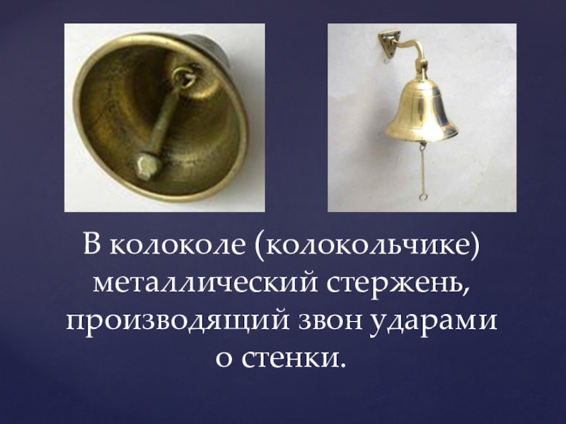 Слайд 7В колоколе (колокольчике) металлический стержень, производящий звон ударами о стенки.