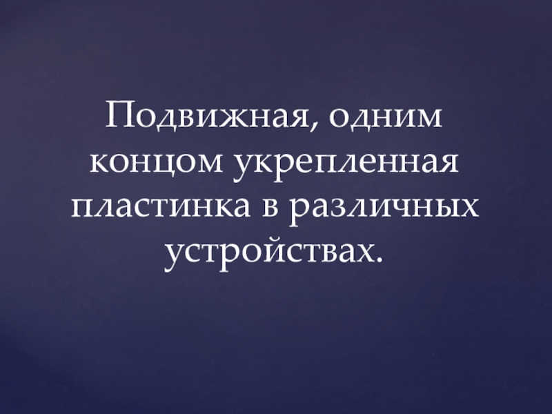 Слайд 8Подвижная, одним концом укрепленная пластинка в различных устройствах.