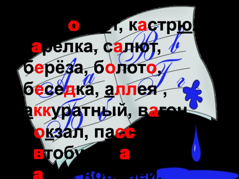 Космонавт, кастрюля, тарелка, салют,берёза, болото, беседка, аллея ,аккуратный, вагон, вокзал, пассажир, автобус, пальто, халат, воробей, помидор, портрет, зеркало.