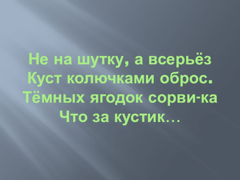 Слайд 18Не на шутку, а всерьёз Куст колючками оброс. Тёмных ягодок сорви-ка Что за кустик…
