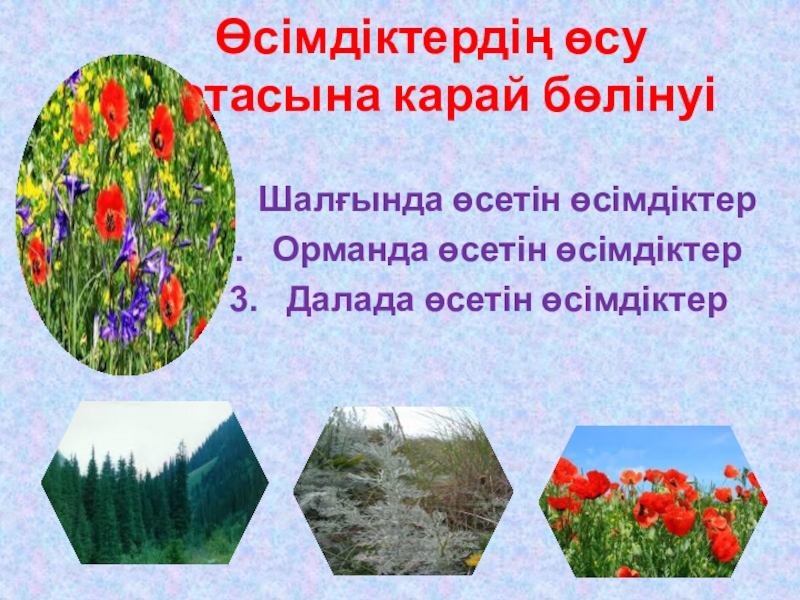 Өсімдіктердің өсу ортасына қарай бөлінуі?