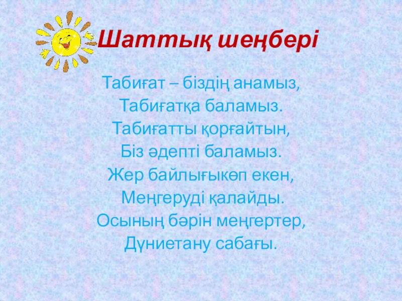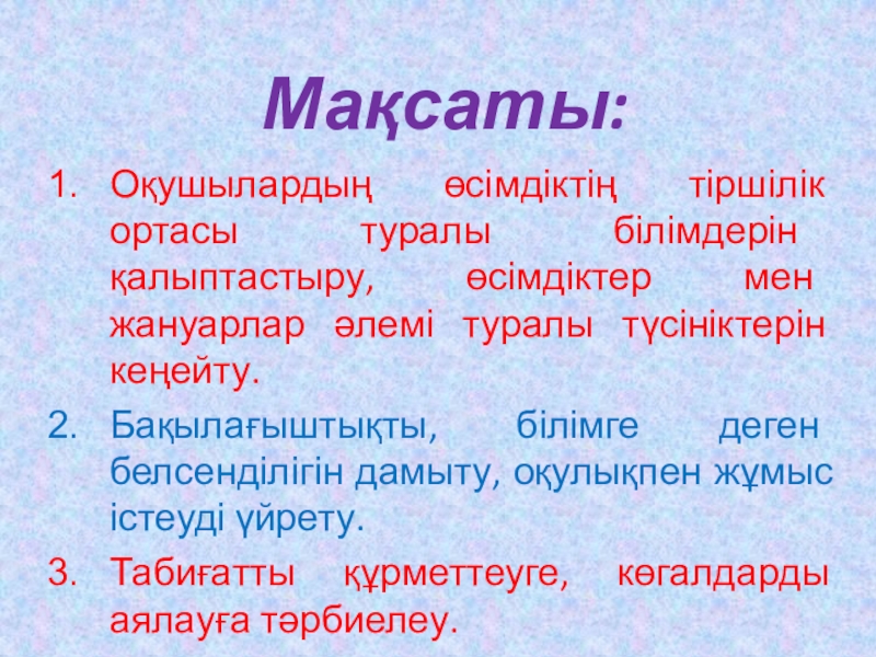 Табиғаттағы өсімдіктерді қорғау керек. Олардың өсіп- жетілуіне басты басты назар аудару керек.