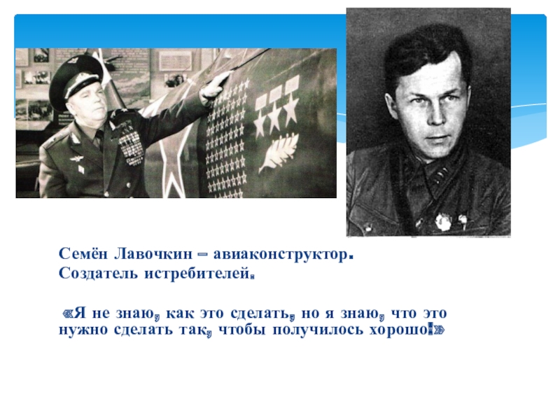 Семён Лавочкин – авиаконструктор.Создатель истребителей. «Я не знаю, как это сделать, но я знаю, что это нужно