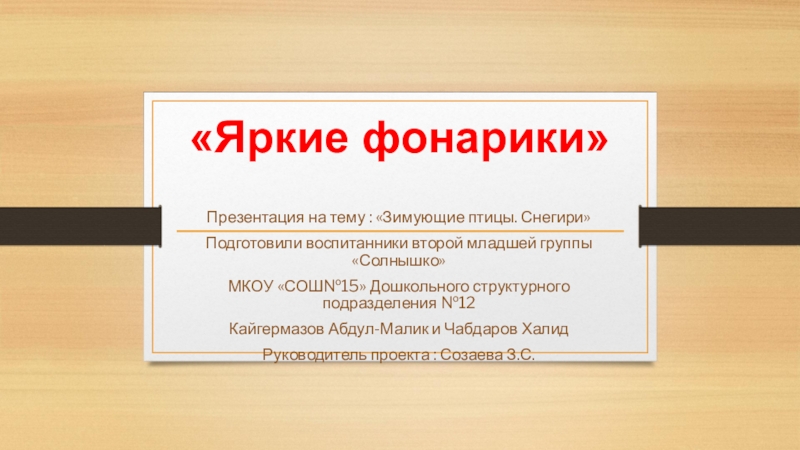 МКОУ «СОШ№15» Дошкольного структурного подразделения №12
