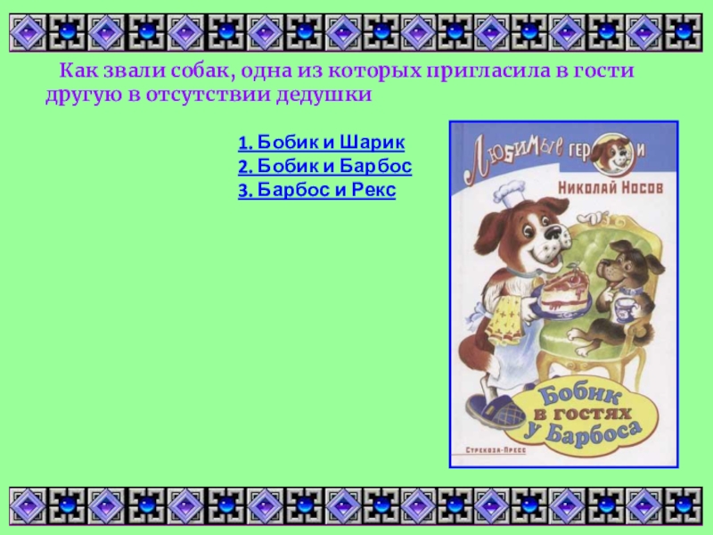Слайд 20 Как звали собак, одна из которых пригласила в гости