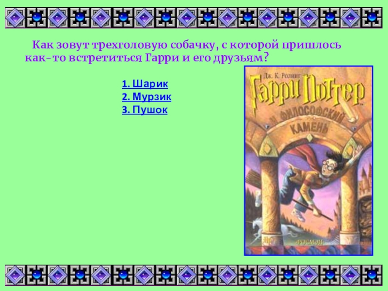 Гарри и его друзьям? 1. Шарик 2. Мурзик 3. Пушок