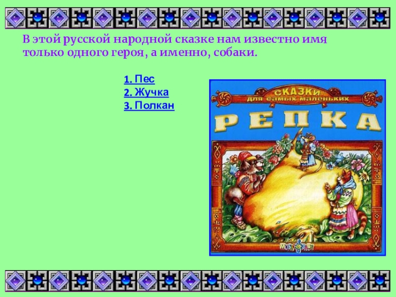 Слайд 26В этой русской народной сказке нам известно имя только одного героя,