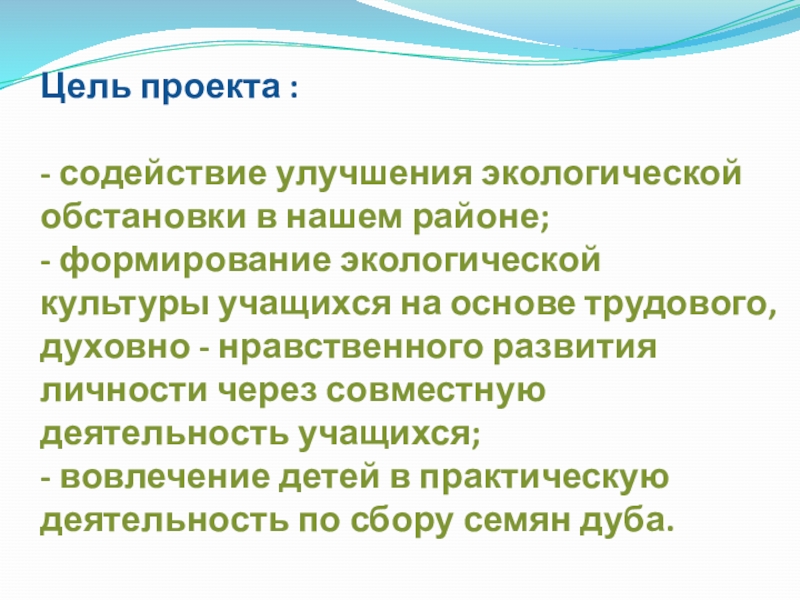 - содействие улучшения экологической обстановки в нашем районе;