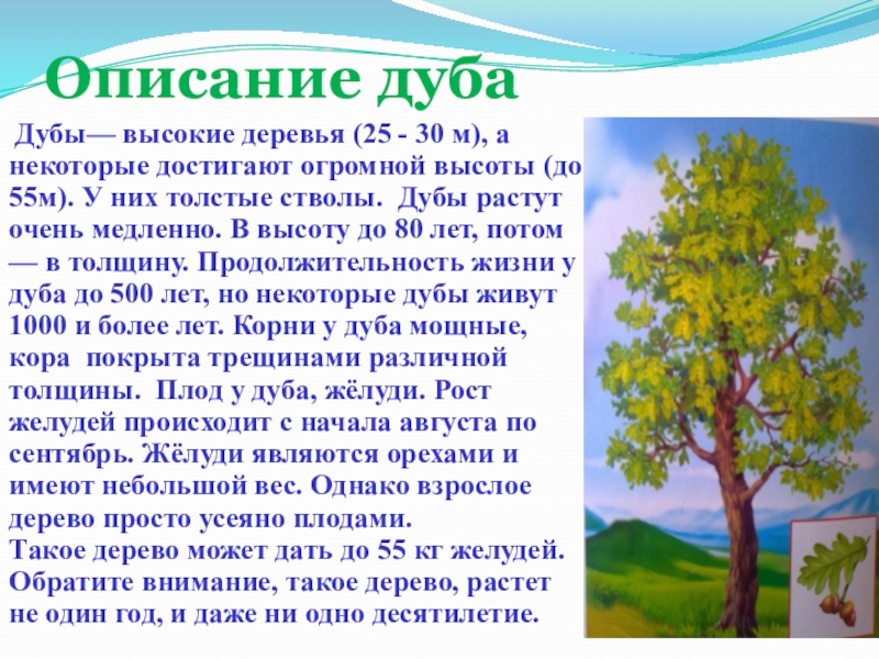 Слайд 9Описание дуба