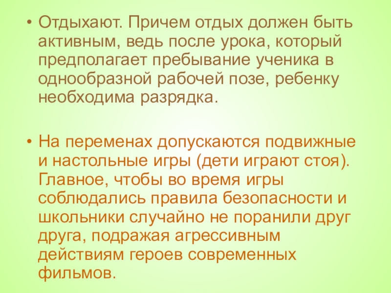Слайд 32Отдыхают. Причем отдых должен быть активным, ведь после урока, который предполагает
