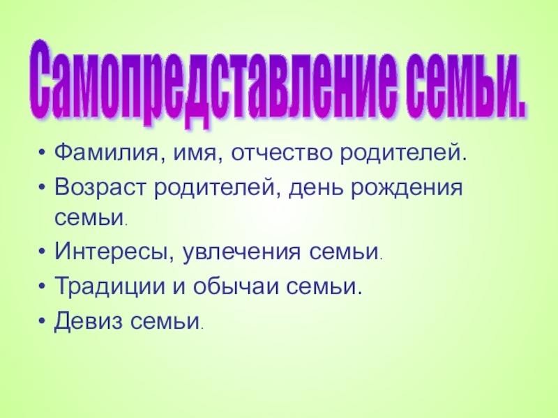 Самопредставление семьи.