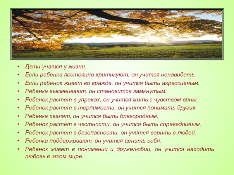 Дети учатся у жизни.