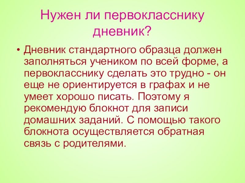 Слайд 37Нужен ли первокласснику дневник?