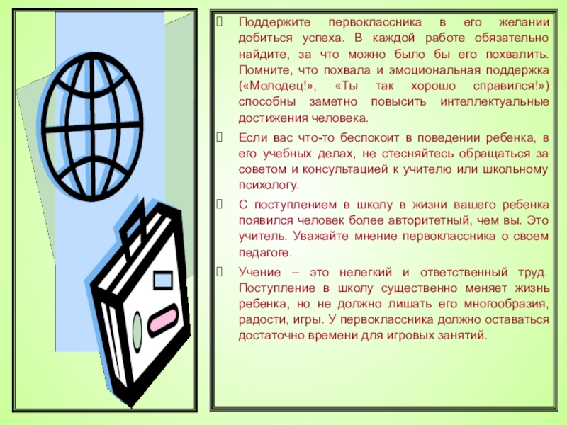 Слайд 4Родителям первоклассников (правила, советы, рекомендации).