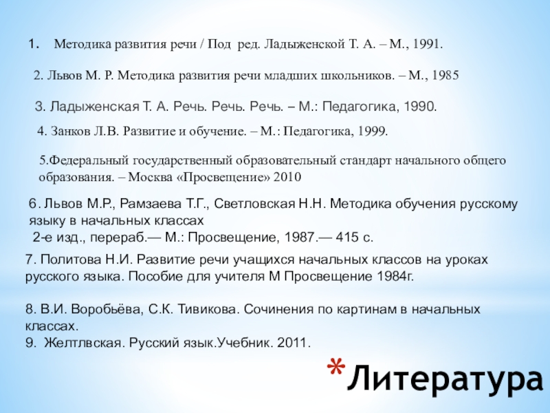 2. Львов М. Р. Методика развития речи младших школьников. – М.,