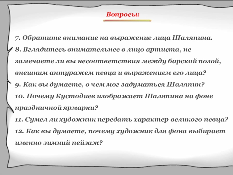 9. Как вы думаете, о чем мог задуматься Шаляпин?