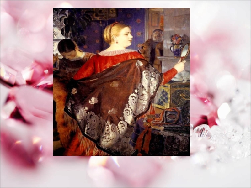 священником. Он учился в духовном училище, потом в семинарии, но увлекся искусством, в 1896 году, оставив семинарию, уехал в Петербург и поступил в Академию художеств (АХ). Там он занимался в мастерской Ильи Репина и настолько преуспел, что руководитель пригласил его к себе в помощники для работы над картиной «Заседание Государственного совета». В Кустодиеве обнаружился дар портретиста, и, еще будучи студентом, он выполнил ряд первоклассных портретов - Даниила Лукича Мордовцева, Дмитрия Семеновича Стеллецкого Родившийся в небогатой семье, Борис Михайлович Кустодиев (1878-1927) готовился стать священником. Он учился в духовном училище, потом в семинарии, но увлекся искусством, в 1896 году, оставив семинарию, уехал в Петербург и поступил в Академию художеств (АХ). Там он занимался в мастерской Ильи Репина и настолько преуспел, что руководитель пригласил его к себе в помощники для работы над картиной «Заседание Государственного совета». В Кустодиеве обнаружился дар портретиста, и, еще будучи студентом, он выполнил ряд первоклассных портретов - Даниила Лукича Мордовцева, Дмитрия Семеновича Стеллецкого, Ивана Яковлевича Билибина (все 1901), Василия Матэ (1902). В 1903 году Кустодиев закончил Академию Художеств, получив за дипломную картину «Базар в деревне» золотую медаль и право на заграничную поездку - Кустодиев выбрал Париж. В Париже художник успел присмотреться к французской живописи и с толком использовать впечатления в прекрасной картине «Утро» (1904), но менее чем через полгода вернулся в Россию, соскучившись по родине.