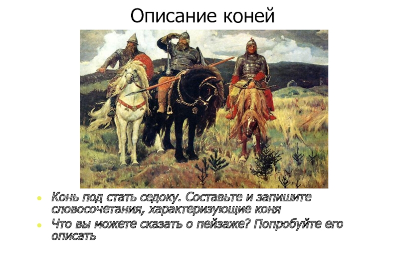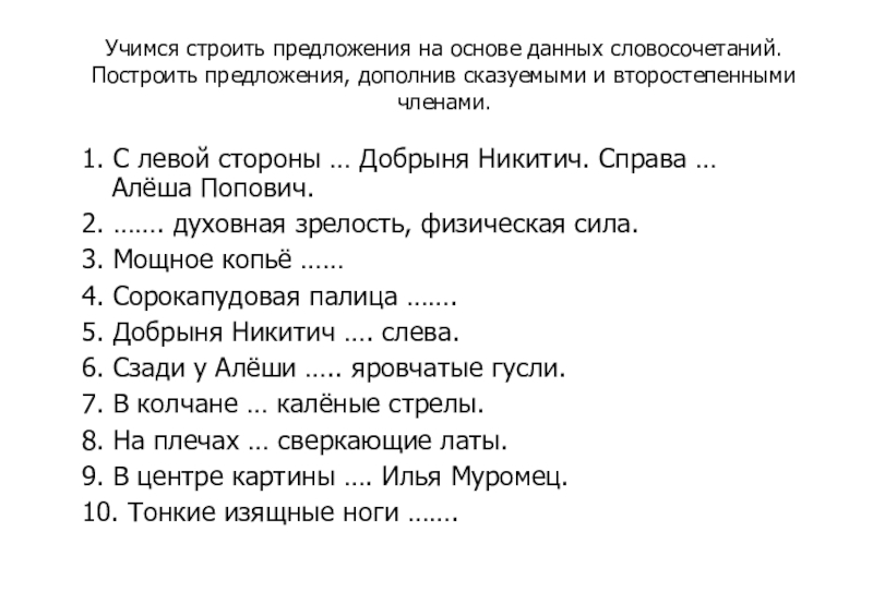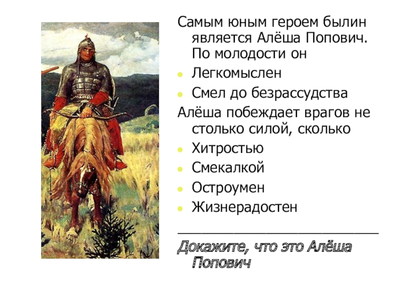 1. С левой стороны … Добрыня Никитич. Справа … Алёша Попович.