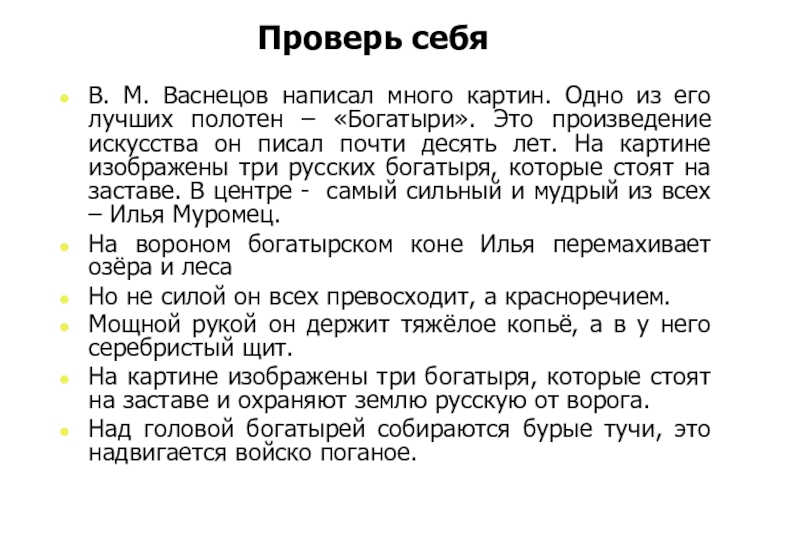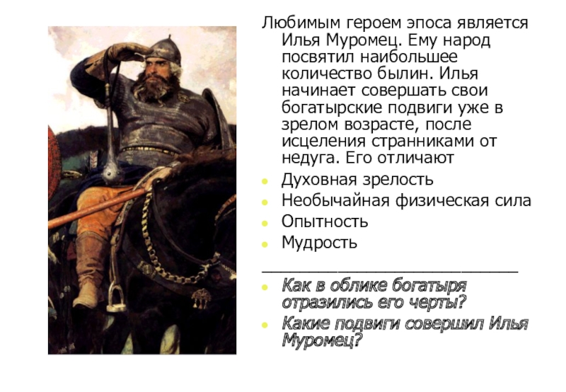 9. В центре картины …. Илья Муромец.