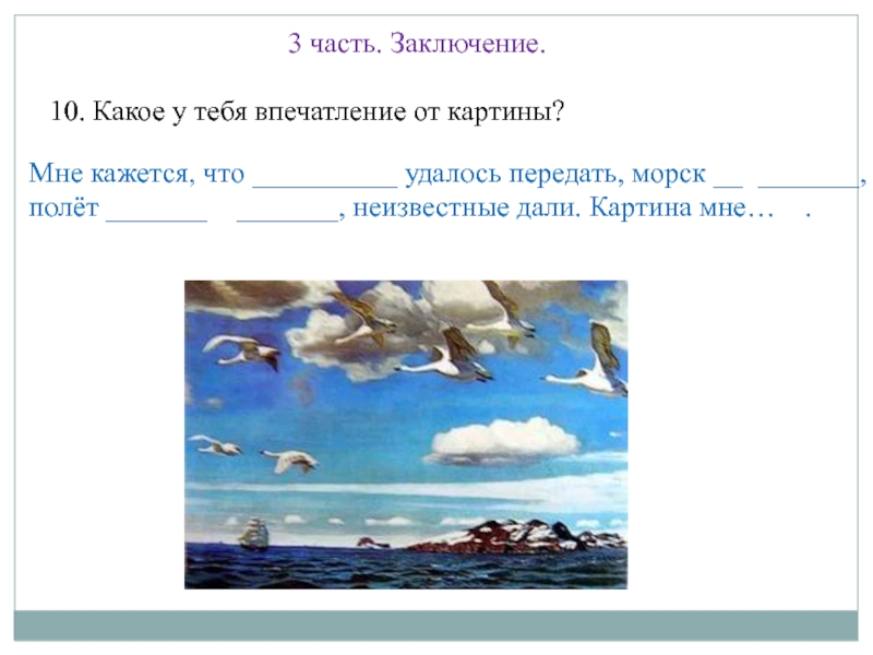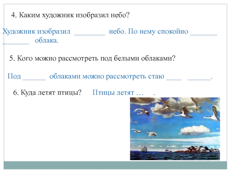 Под ______ облаками можно рассмотреть стаю ____ ______.