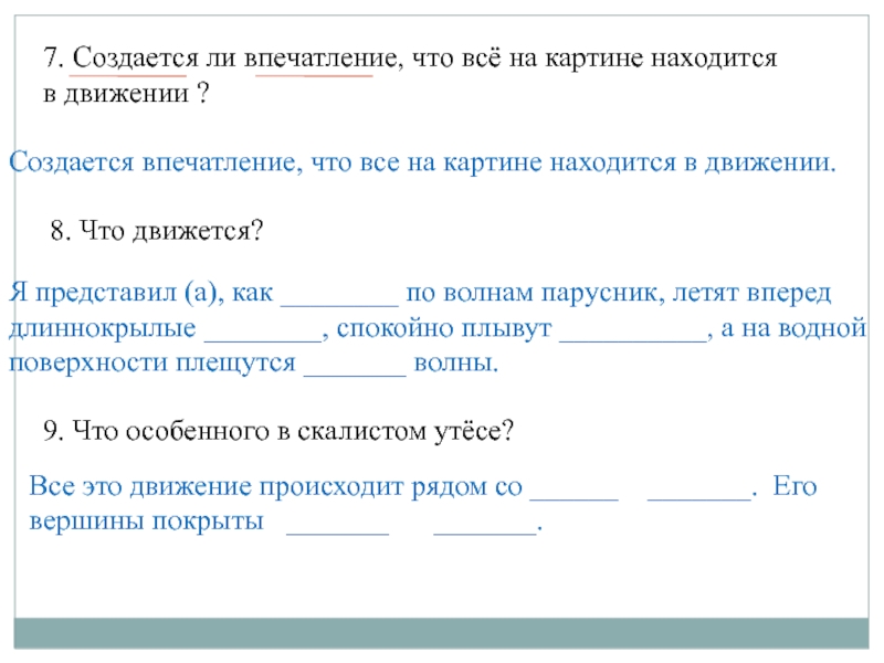 Я представил (а), как ________ по волнам парусник, летят вперед