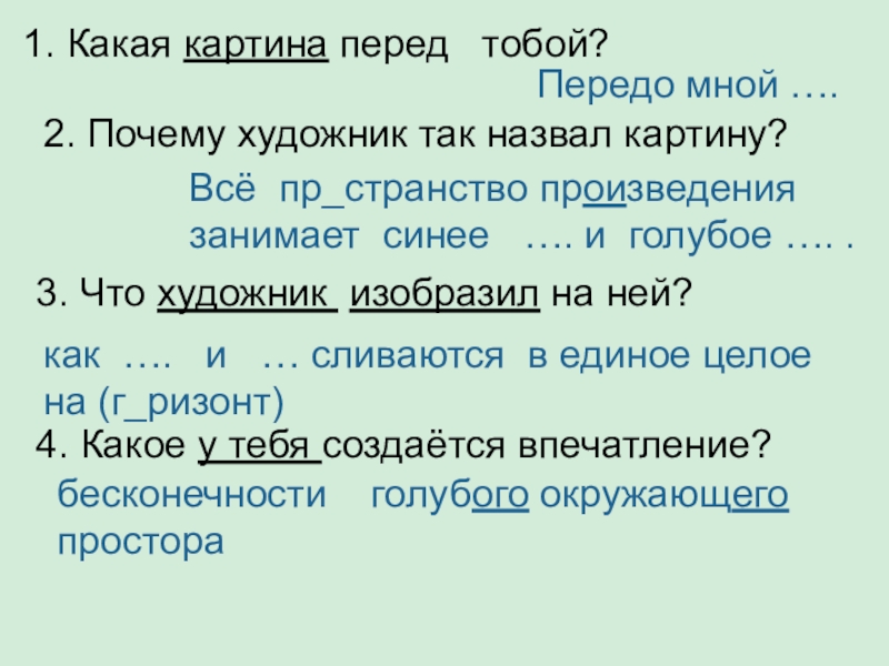 Всё пр_странство произведения занимает синее …. и голубое …. .