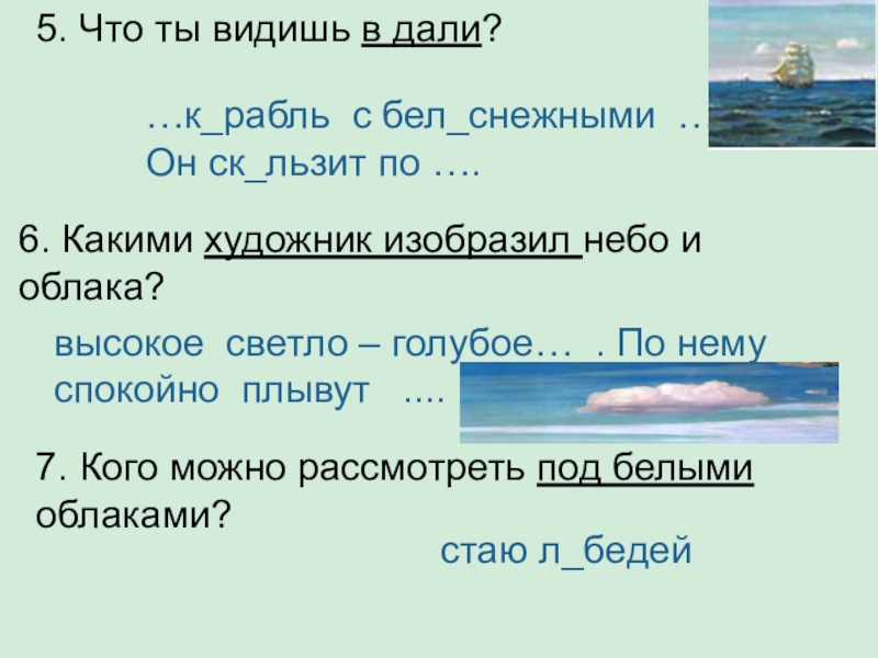 7. Кого можно рассмотреть под белыми облаками?