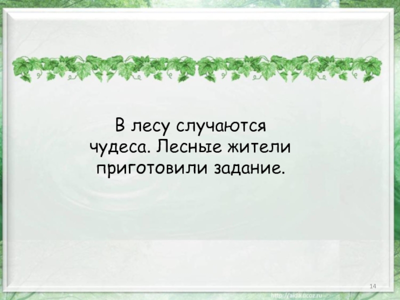 Слайд 14В лесу случаются чудеса. Лесные жители приготовили задание.