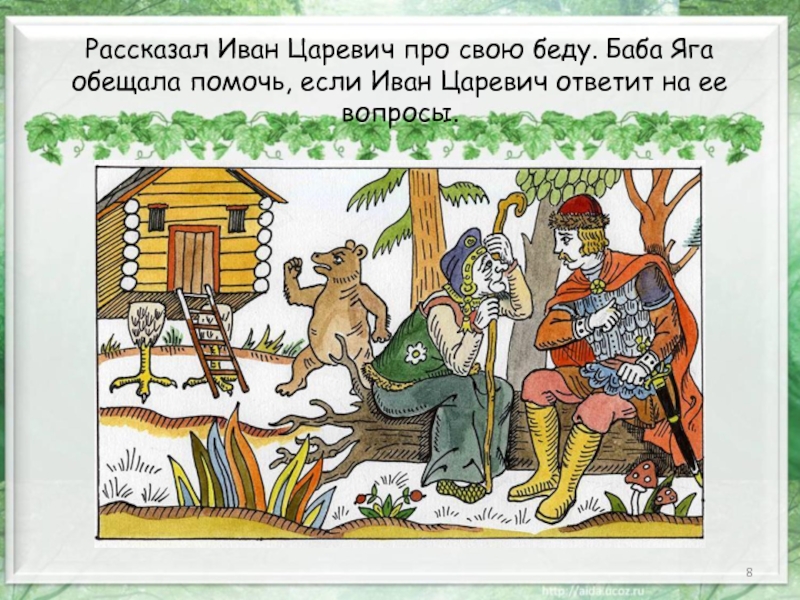 Слайд 8Рассказал Иван Царевич про свою беду. Баба Яга обещала помочь, если