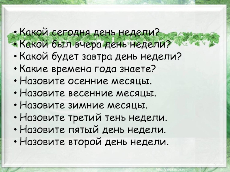 Слайд 9Какой сегодня день недели?