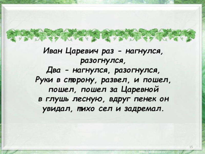 Слайд 15Иван Царевич раз - нагнулся, разогнулся,
