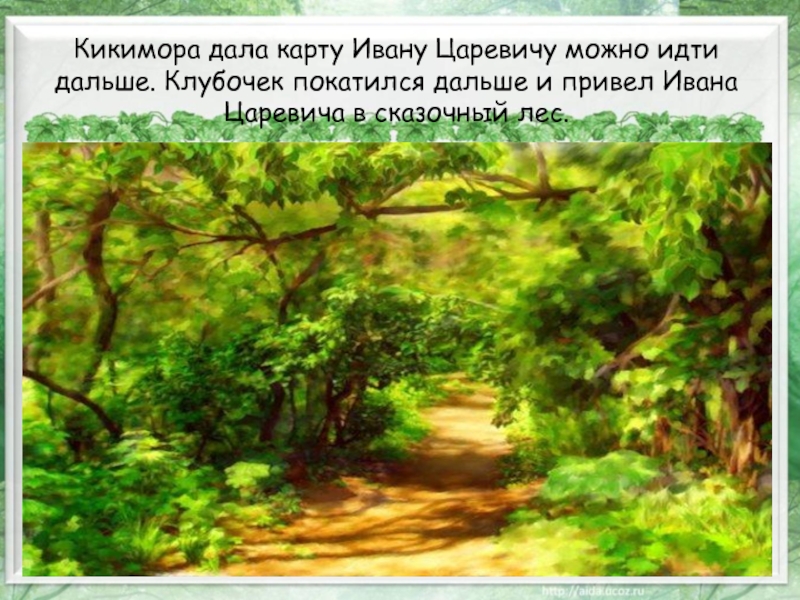 Слайд 13Кикимора дала карту Ивану Царевичу можно идти дальше. Клубочек покатился дальше