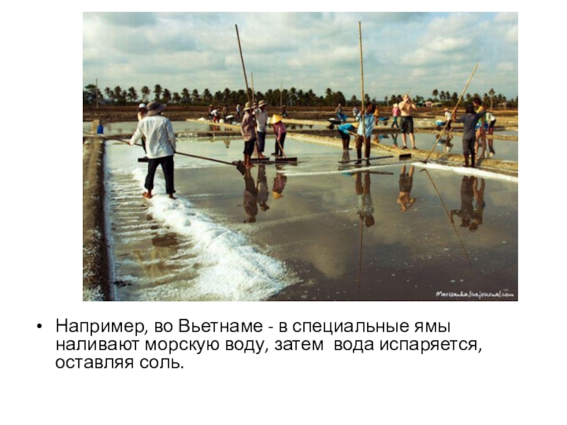 Например, во Вьетнаме - в специальные ямы наливают морскую воду, затем
