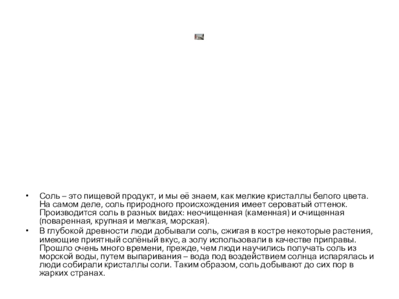 Слайд 8Соль – это пищевой продукт, и мы её знаем, как мелкие