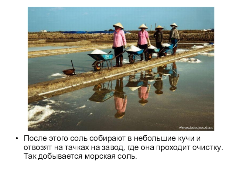 После этого соль собирают в небольшие кучи и отвозят на тачках