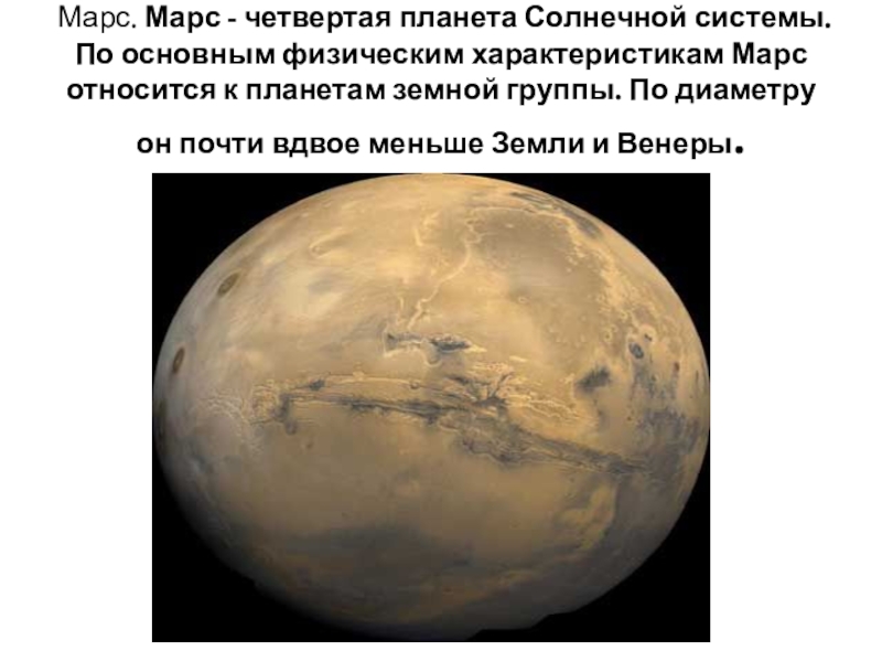 Слайд 20Марс. Марс - четвертая планета Солнечной системы. По основным физическим характеристикам