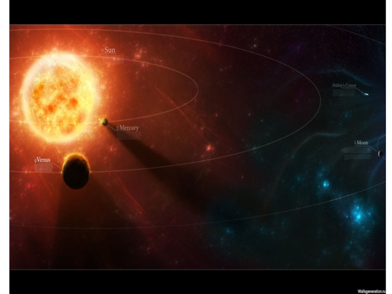 Меркурия до Солнца всего лишь 58 млн. км. Полный облет вокруг Солнца планета совершает за три земных месяца или за 88 суток со скоростью 47,9 км/сек, делая за это время только полтора оборота вокруг своей оси.