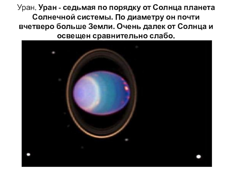 Слайд 24Уран. Уран - седьмая по порядку от Солнца планета Солнечной системы.