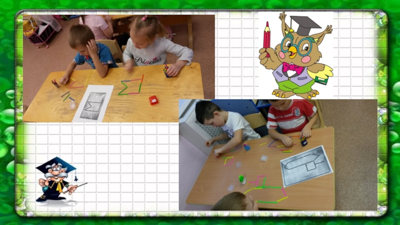 В фигуре, состоящей из 6 квадратов, убрать 2 палочки, чтобы осталось 4 равных квадрата.