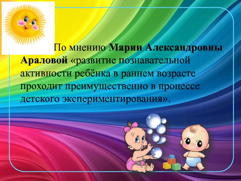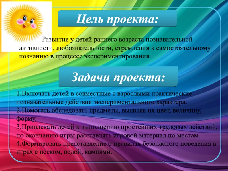 Развитие у детей раннего возраста познавательной активности, любознательности, стремления к самостоятельному познанию в процессе экспериментирования.