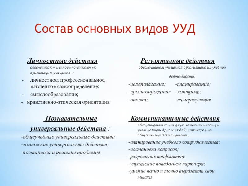 Регулятивные действия обеспечивают учащимся организацию их учебной деятельности: