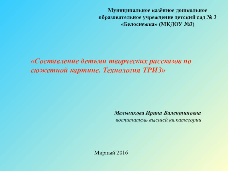 «Составление детьми творческих рассказов по сюжетной картине. Технология ТРИЗ»