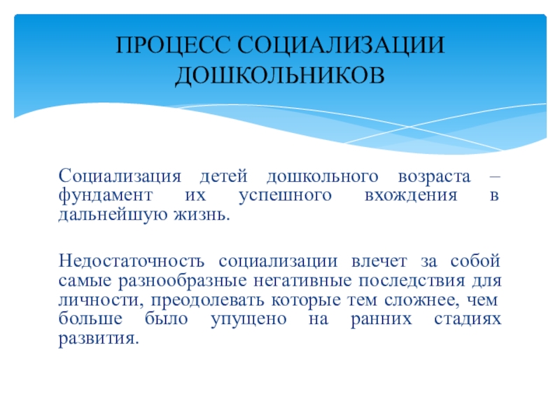 ПРОЦЕСС СОЦИАЛИЗАЦИИ ДОШКОЛЬНИКОВ