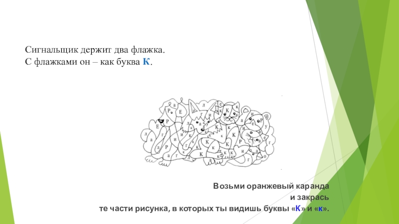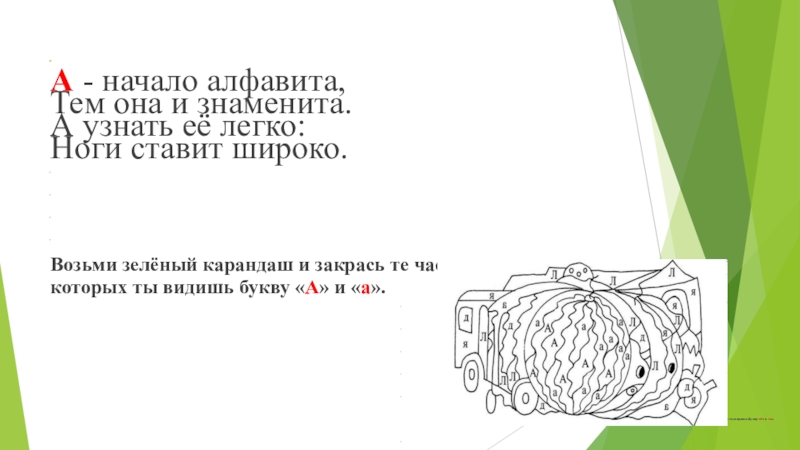 Возьми зелёный карандаш и закрась те части рисунка, в которых ты видишь букву «А» и «а».