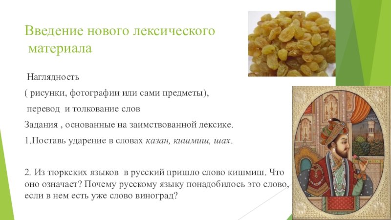 2. Из тюркских языков в русский пришло слово кишмиш. Что оно означает? Почему русскому языку понадобилось это слово, если в нем есть уже слово виноград?